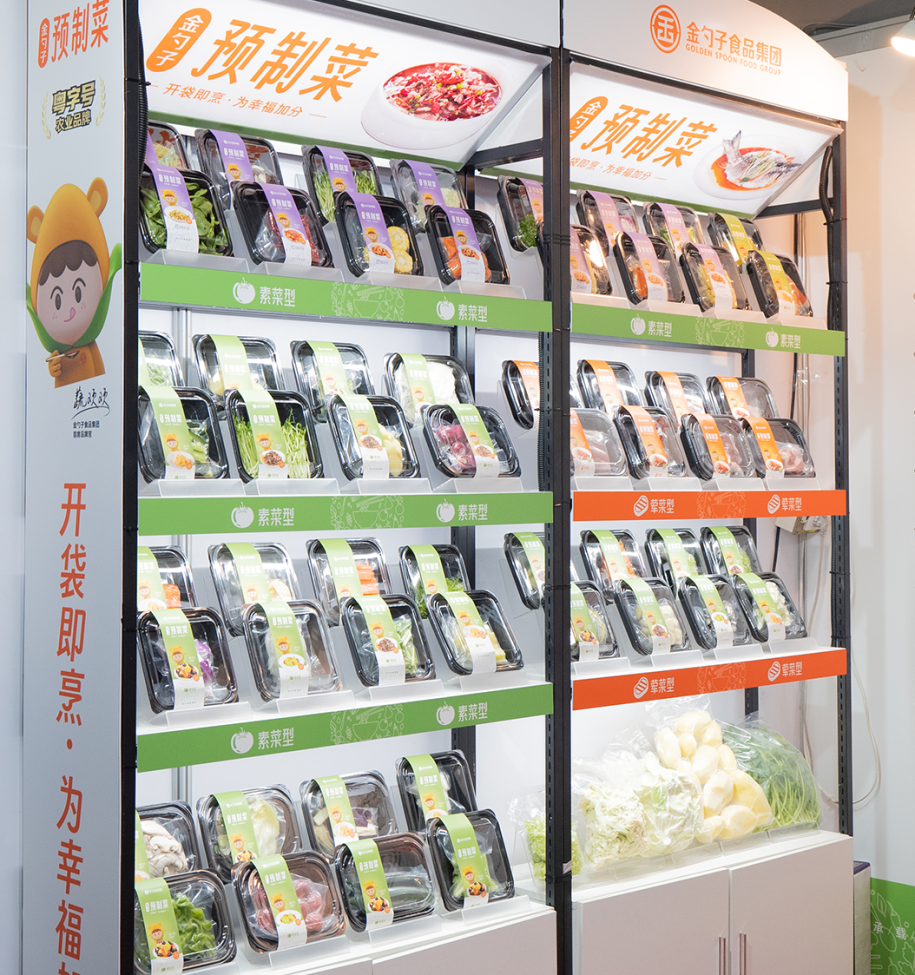 廣東中膳金勺子食品集團(tuán)有限公司以粵字號(hào)農(nóng)業(yè)品牌“金勺子預(yù)制菜”亮相展會(huì),推出包裝鮮切菜、生鮮半成品、快手菜、火鍋菜等系列營養(yǎng)便捷、美味健康的新品,吸引無數(shù)人前來參觀交流。
