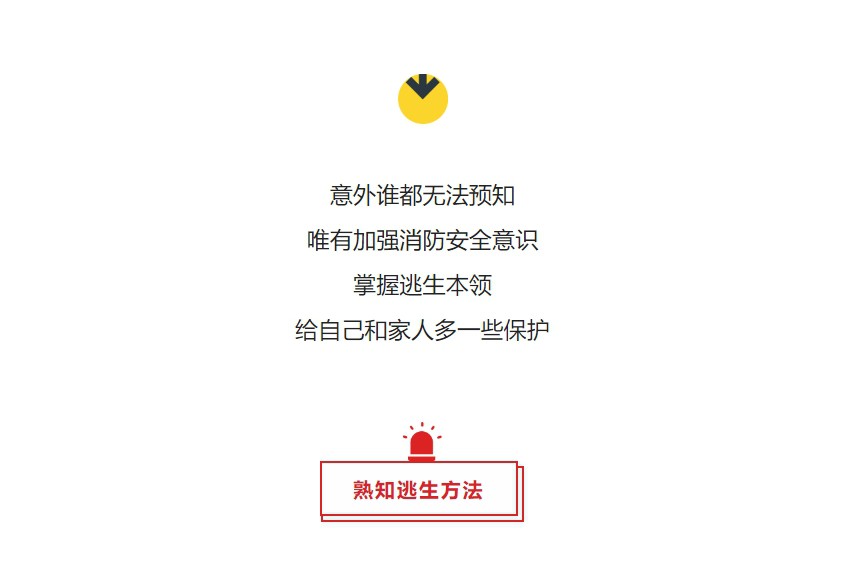 3、如遇火情,不要貿然開門,在打開門之前,要先用手背觸摸門或把手,如果不燙,溫度正常,表示火焰離你還有一段距離。可以打開門縫,觀察樓梯間有無大量煙氣,如果沒有,就迅速從樓梯間向下逃生,通過樓梯間時要順手關閉防火門,如果有,應立即退回室內,等待救援。 4、如果摸門或把手已經感到燙手,或有煙霧從門縫鉆進,表示火焰可能已經靠近,千萬不要開門,應退回室內,用衣物、床單被罩等浸濕后堵住門縫,潑水降溫防煙,同時撥打“119”報告被困樓層和房間等重要位置信息,在靠近窗口的位置,通過打手電筒、揮舞衣物等方式發出求救信號,退守待援。 5、在逃生過程中,可佩戴防煙面罩或用浸濕的毛巾衣物捂住口鼻,要根據煙的濃度和高度采取相應的姿態進行逃生,如果火勢正處于初起階段,此時煙小火小,煙氣層比較高,應該低頭跑向戶外。較低的時候必須彎腰低姿,那么再低的時候,需要沿地面、貼地面爬行,如果火勢較大,樓梯間全是煙,這個時候絕對不能往外跑了,有濕毛巾也不能跑,應立即關門,防止煙進來。 6、身上著火,千萬不要奔跑,可就地打滾或用厚重衣物壓滅火苗,但滾動速度不要過快,否則不容易壓滅火,也可以讓他人端水來澆滅。 7、注意!在逃生時千萬不可以乘坐電梯!起火時,普通電梯通常會處于斷電狀態,無法正常使用。且熱煙氣有時會以每秒3-5米的速度在井內向上猛竄,此時乘坐電梯,會瞬間被濃煙吞噬。 8、火場逃生的首要任務就是躲火避煙,若所有逃生線路被大火或濃煙封鎖,切不可貿然穿越火海逃生,應立即退回室內,用打手電筒、揮舞衣物、呼叫等方式向窗外發送求救信號,等待救援。 9、高層住宅遇到火情時,絕不能盲目跳樓逃生!可利用疏散樓梯、天臺等逃生,樓層較低,可以把床單、被套撕成條狀連成繩索,緊拴在窗框、鐵欄桿等固定物上,順繩滑下,或下到未著火的樓層脫離險境。 10、逃生過程中,記得確保防火門為關閉狀態,否則下層的煙氣會順著樓道往上躥。還有不要在樓下圍觀,避免火災引發高空墜物帶來的傷害;已經逃離險境的人員,切不可貪戀財物、重返火場。 11、消防部門建議,居民最好在家中安裝有火災預警功能的獨立式煙感報警器,配備簡易滅火器、防煙面罩、多功能手電筒等應急逃生裝備。 12、在公共場所的逃生提示 在商場等人員密集的場所,發生火災時,最可怕的就是恐慌,發生推搡、踩踏的情況。所以,無論火災大小,都應該盡量保持沉著冷靜。只有這樣,才能確保自己的判斷力和觀察力,才能在緊急情況下找到有效的逃生方法。同時,在疏散、逃生時也要注意方法,不要爭先恐后用力推搡,應有序撤離,行走或跑步時要踮起腳尖,配合工作人員疏散引導。 當你入住酒店后,要了解自身所處的位置,熟悉最近通往安全區域的通道。入住酒店時先到安全出口看一看,熟悉路線,掌握好疏散距離和時間,倘若發生火災,能在最短時間內準確無誤地疏散至安全地域。 當公共汽車發生火災時,要特別冷靜果斷,盡量從前門和后門逃生。若車門打不開,應砸開車窗跳車。用車上配備的安全錘,或用高跟鞋的鞋跟、皮帶扣等,需全力往一個點上砸,正確方式是砸玻璃的四角,比較容易破碎。此外,公交車頂部一般都有“逃生窗”,平時當換氣窗用,遇到危急情況時,可將其推開逃生。